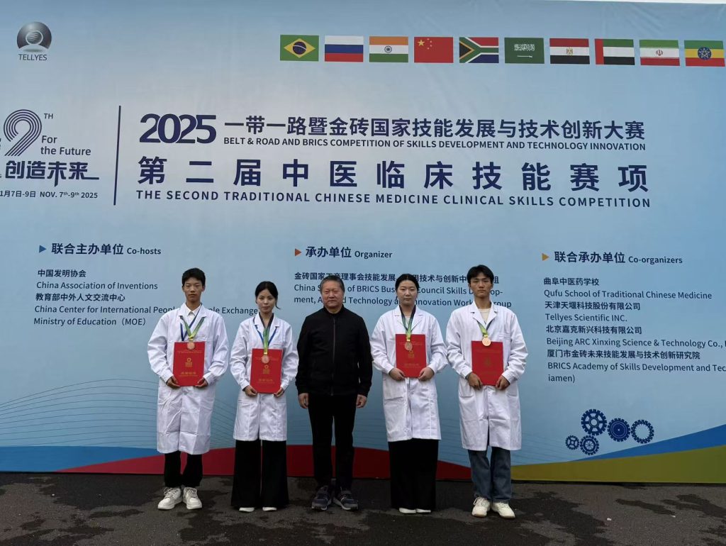 11月8日,從2025“一帶一路”暨金磚國(guó)家技能發(fā)展與技術(shù)創(chuàng)新大賽第二屆中醫(yī)臨床技能賽項(xiàng)的賽場(chǎng)傳來(lái)喜訊,由我校楊智慧、賈文宇、李克朔、胡森林四位同學(xué)組成的參賽團(tuán)隊(duì),憑借扎實(shí)的專(zhuān)業(yè)功底和出色的臨場(chǎng)表現(xiàn),榮獲團(tuán)體三等獎(jiǎng),展現(xiàn)了我校學(xué)子的專(zhuān)業(yè)素養(yǎng)和精神風(fēng)貌。