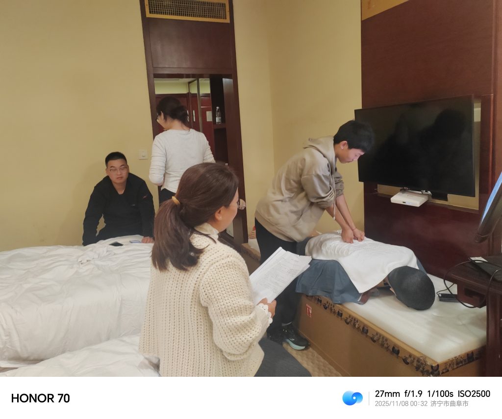 備賽過(guò)程中,最令人動(dòng)容的是師生同心、無(wú)私奉獻(xiàn)的感人畫(huà)面。張靈敏老師在接到學(xué)校參賽消息后,為參賽學(xué)子傾囊相授。從晨光熹微到夜深人靜,張老師的日程表里只有學(xué)生——他常常是早上在校完成教學(xué)工作,中午一盒泡面簡(jiǎn)單果腹后,便匆匆趕到實(shí)訓(xùn)室指導(dǎo)學(xué)生手法,晚上十一點(diǎn)多,他的微信群依然活躍,耐心地為學(xué)生們答疑解惑,提供理論指導(dǎo)。他的敬業(yè)精神與深切關(guān)懷,深深感染著每一位參賽選手。