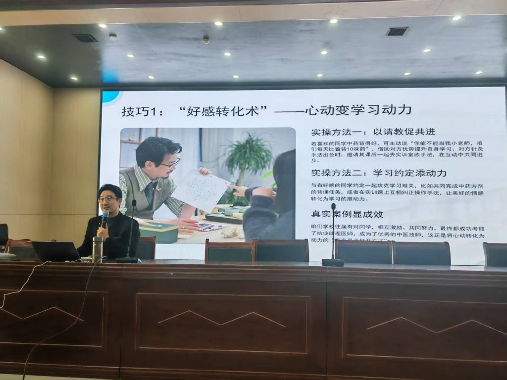 講座中,諾德老師還分享了實用的“好感轉(zhuǎn)化術(shù)”——將心動轉(zhuǎn)化為學(xué)習(xí)動力;“拒絕小妙招”——“謝謝+肯定+目標(biāo)約定”的幽默公式;以及專業(yè)的“情緒調(diào)節(jié)法”——聞薄荷清心、練推拿靜心等。這些方法既貼近專業(yè)特色,又簡單易行。